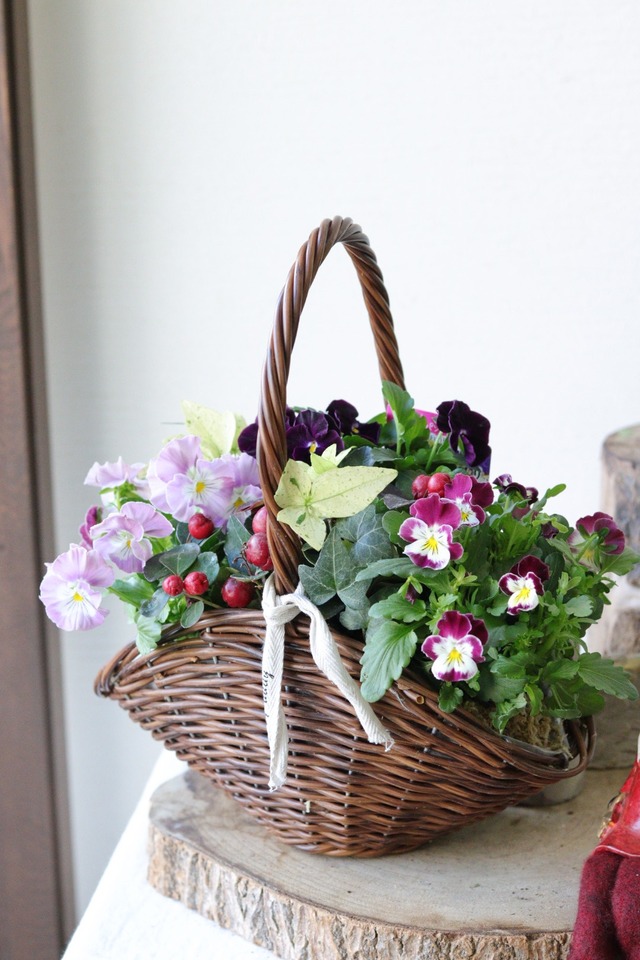 ボリューム満点❤︎パンジーわらくの冬の花籠