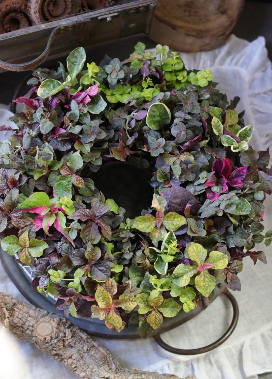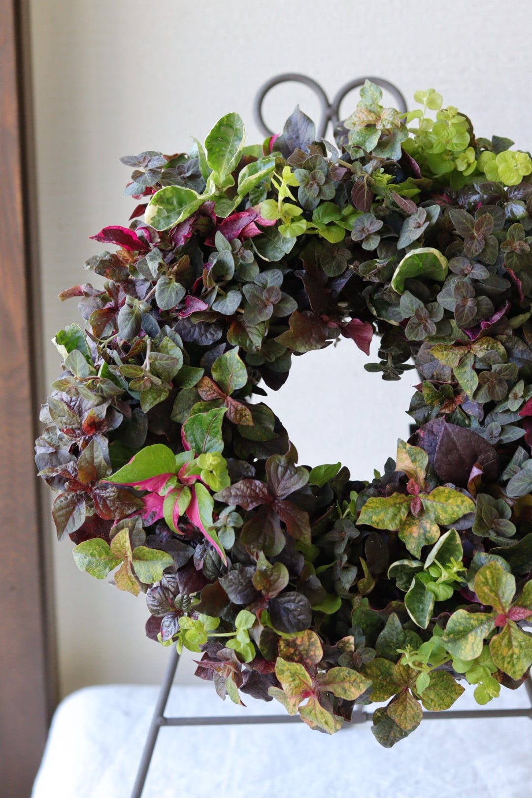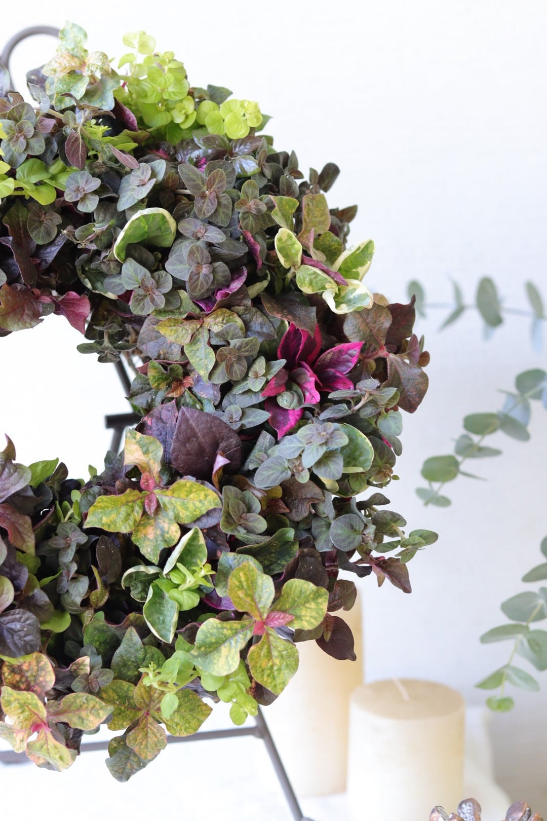 秋色リーフのシックなリース寄せ植えM size