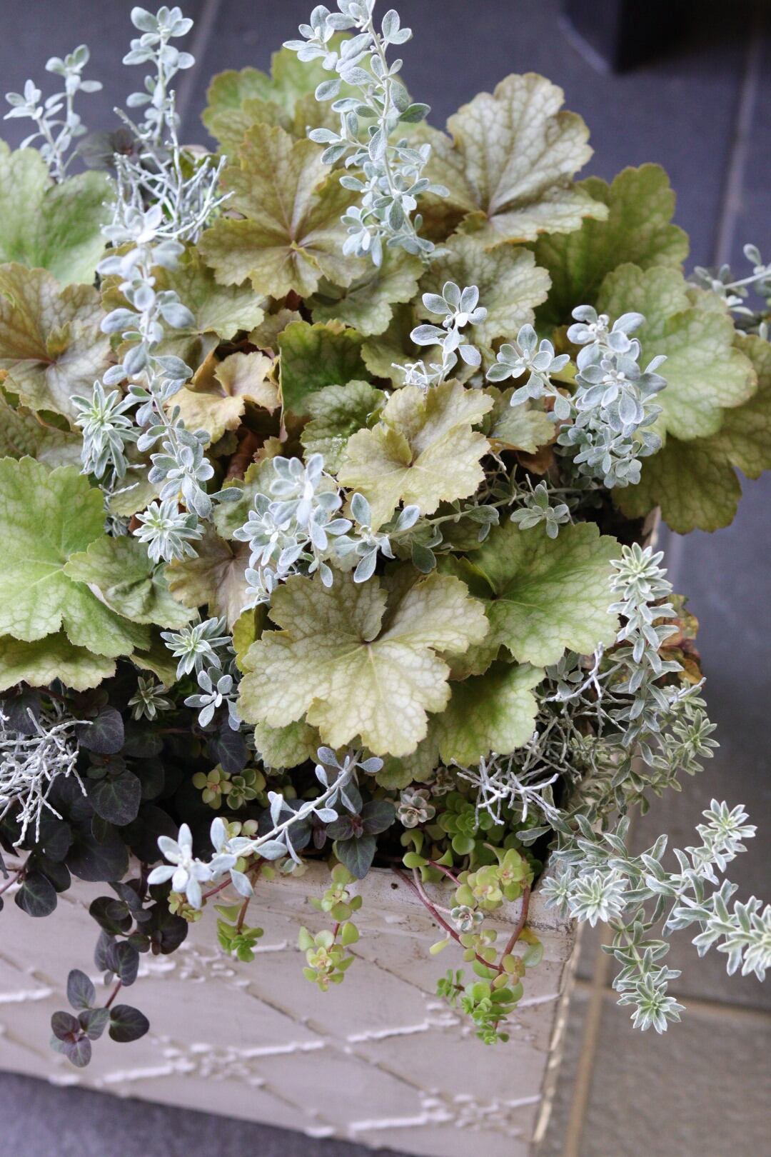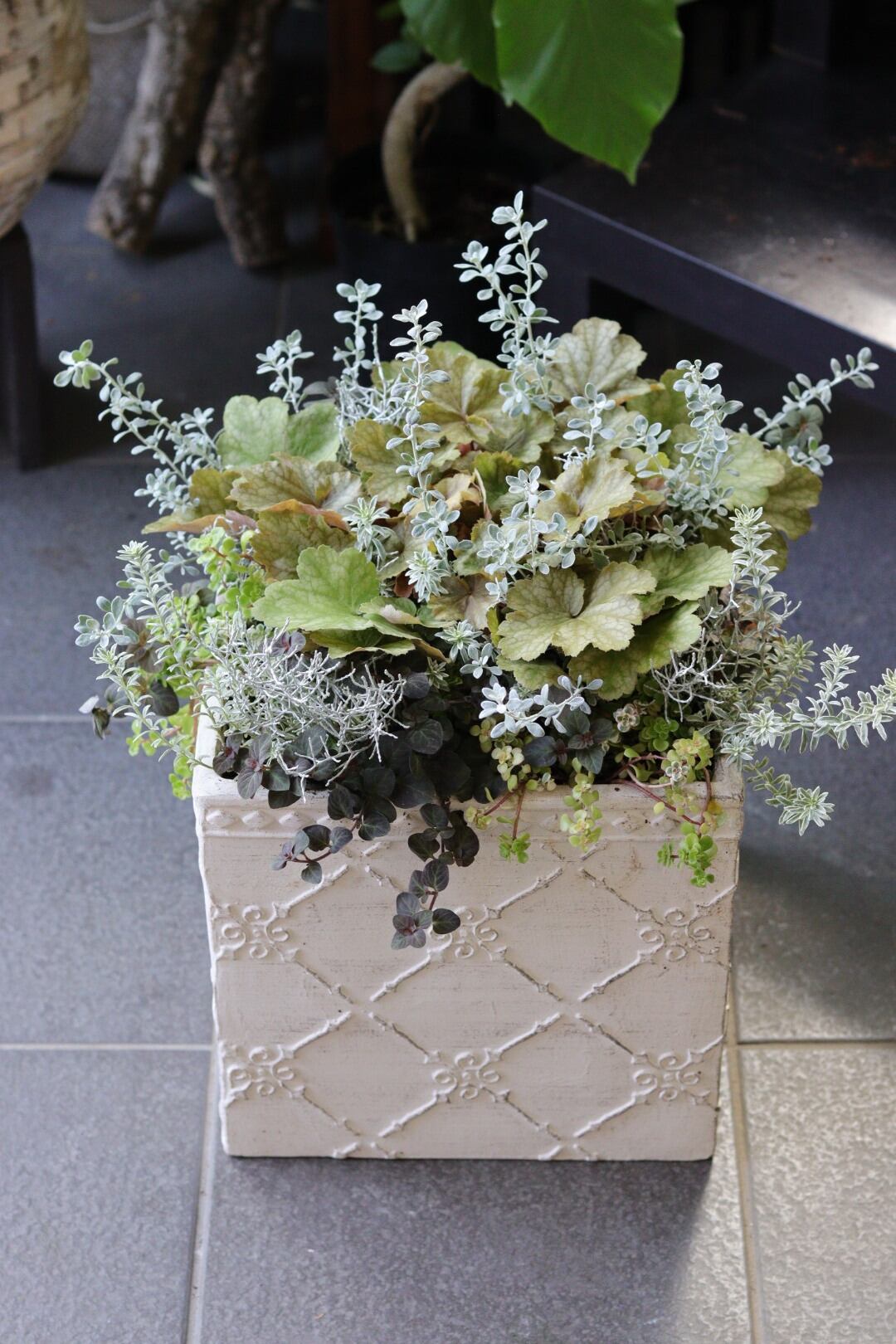 カラーリーフ&シルバーリーフのスクエア鉢寄せ植え