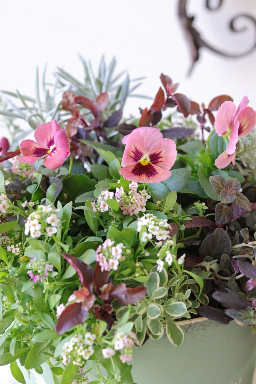 パンジーわらくを主役に褐色リーフや斑入りリーフ