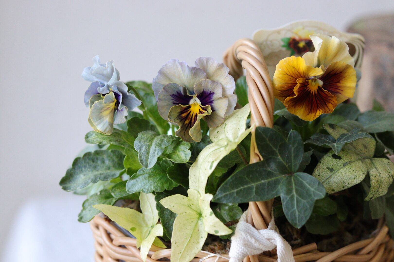 シックなパンジー❤︎マシェリマダムの籠寄せ植え
