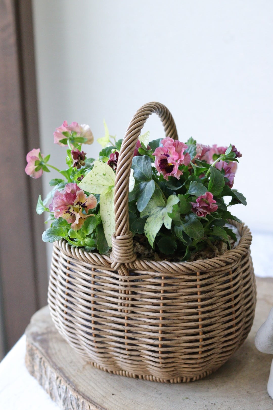 【ミニ籠寄せ植え一律3700!】パンジー天の羽衣のミニ籠寄せ植え