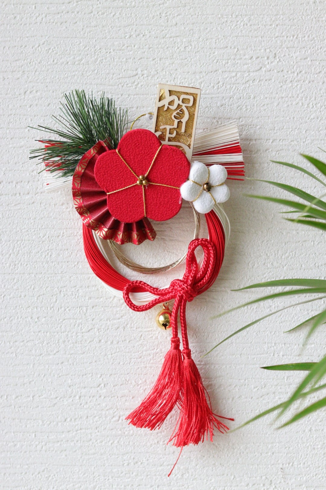 迎春❤︎赤いお花のお正月用しめ縄飾り