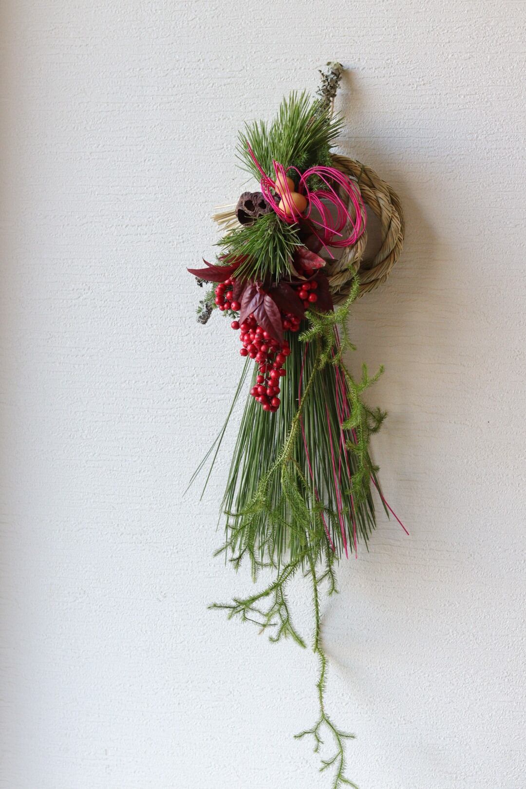 迎春♡大王松とミニひょうたんのしめ縄飾り