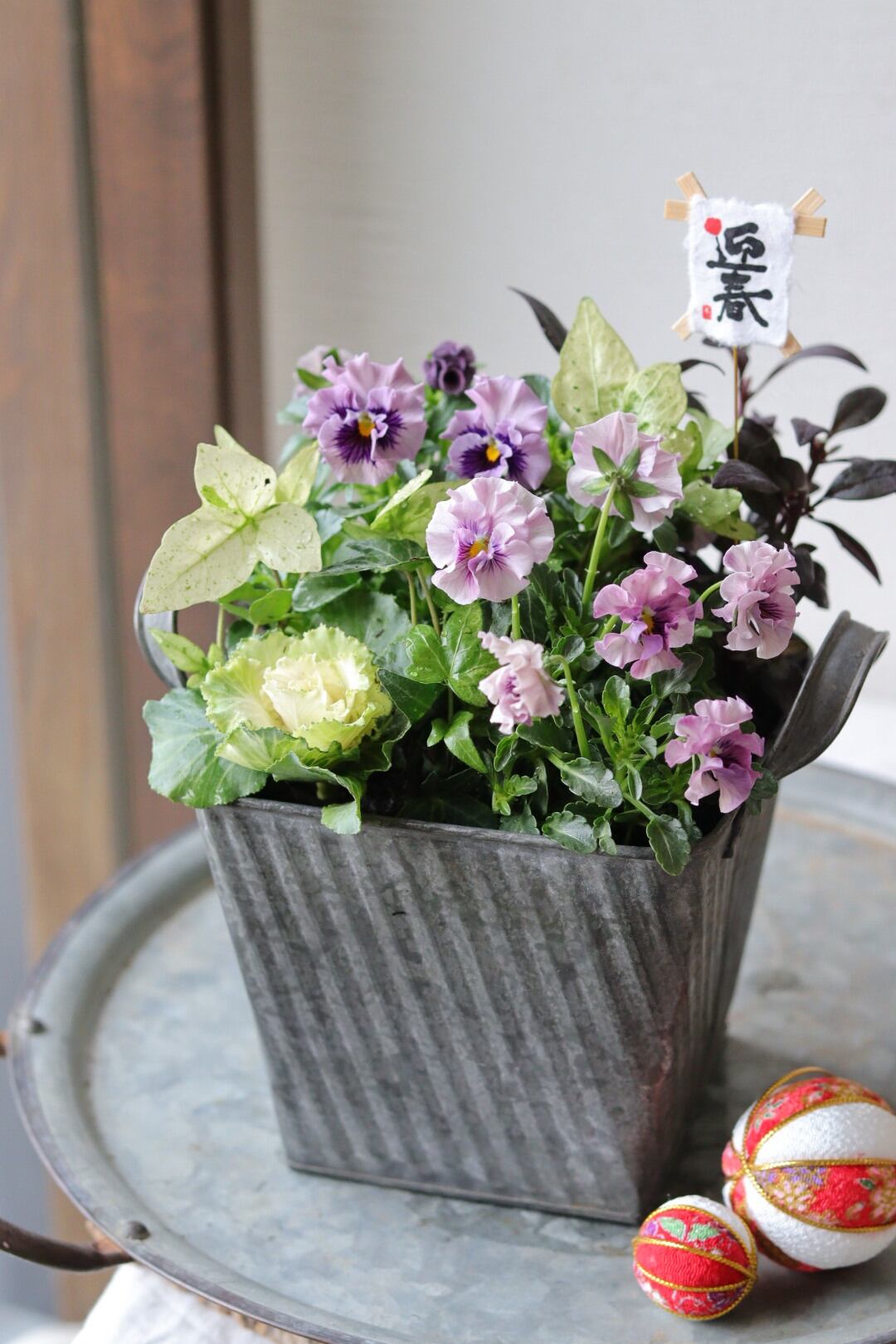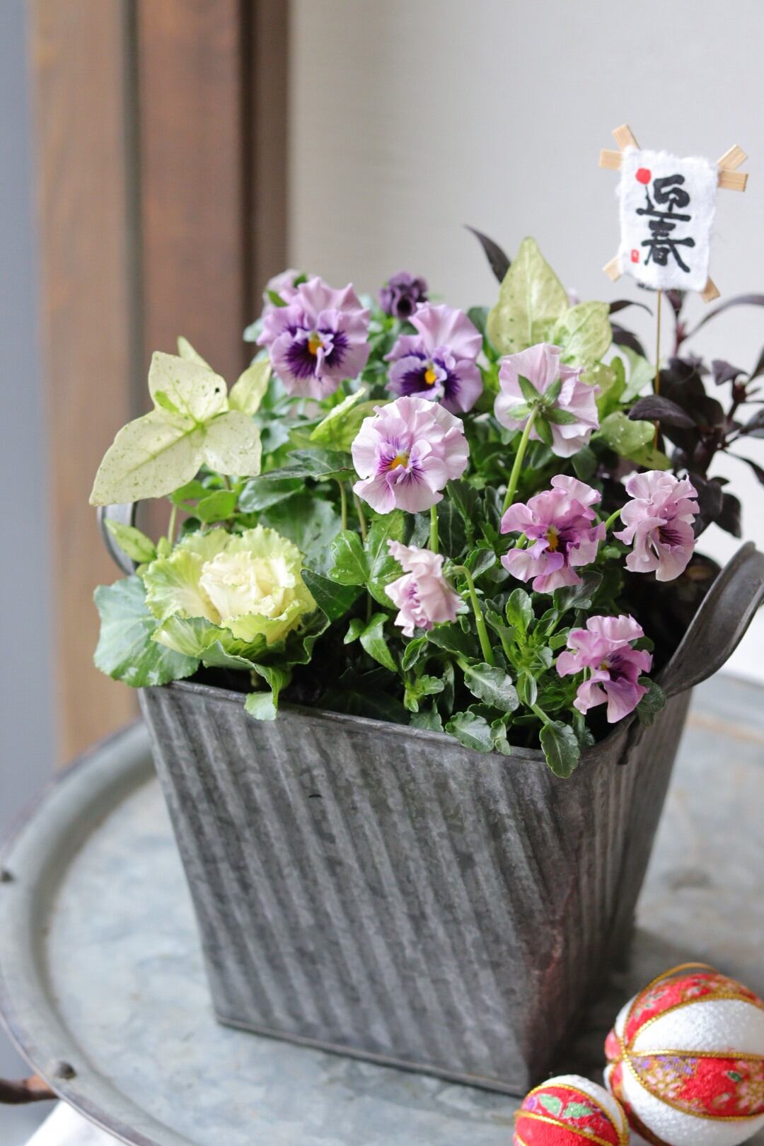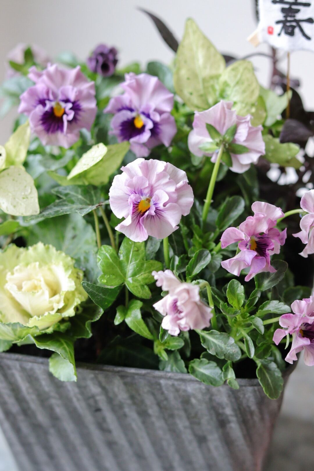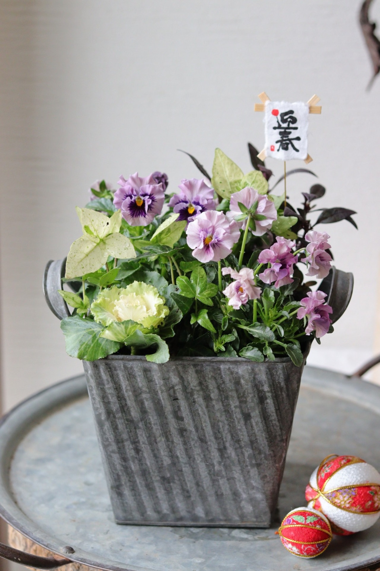 迎春♡ちょっぴりシックなフリル葉牡丹の寄せ植え