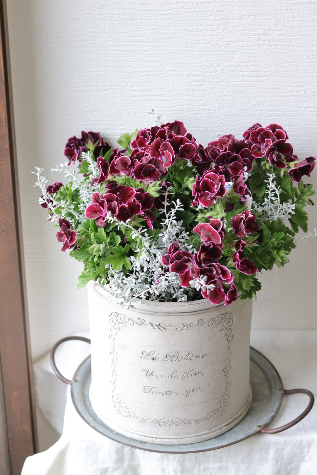 ふりふりペラルゴ♡ワインカラーのシックな寄せ植え