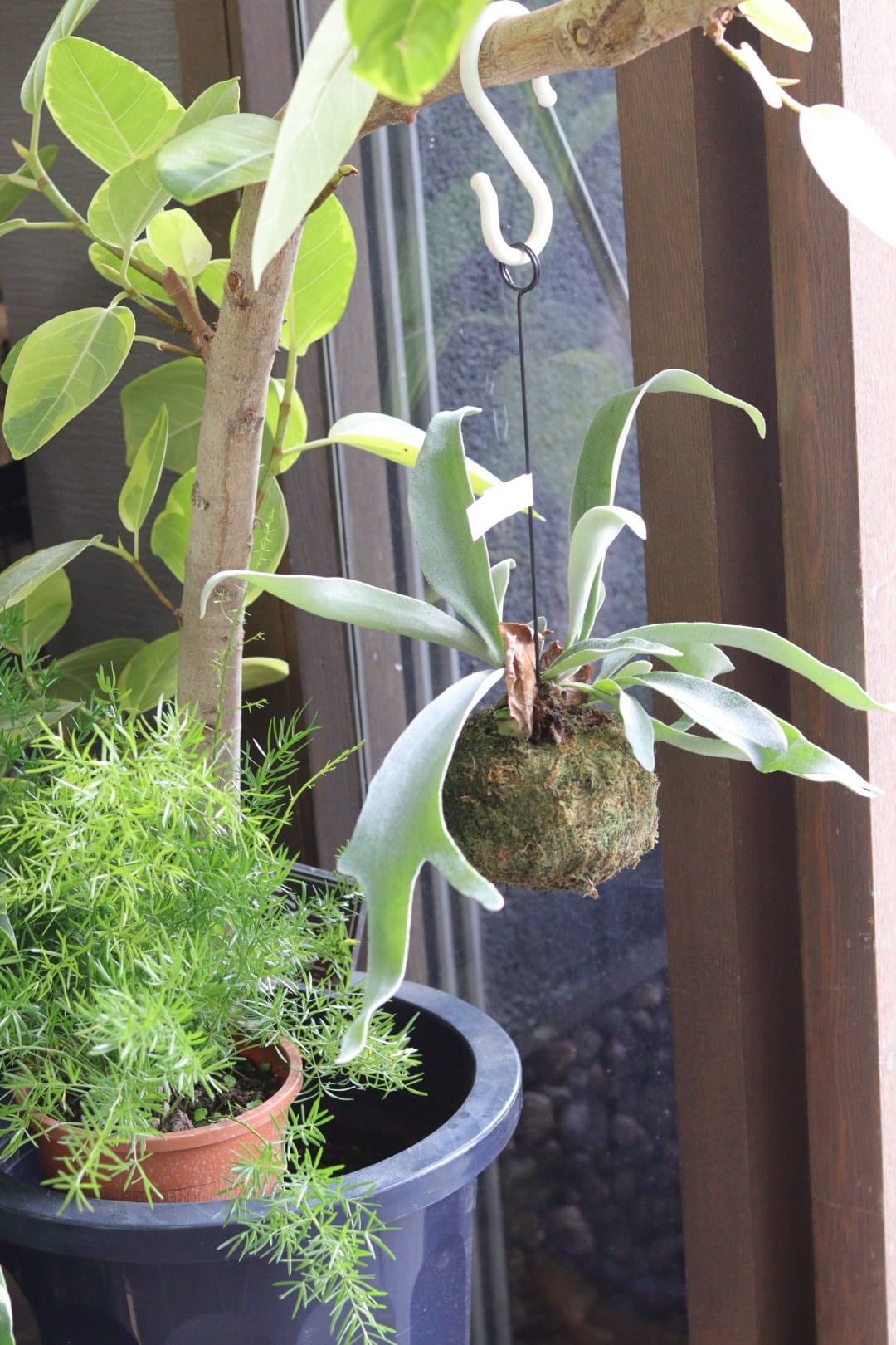 苔玉のコウモリラン。